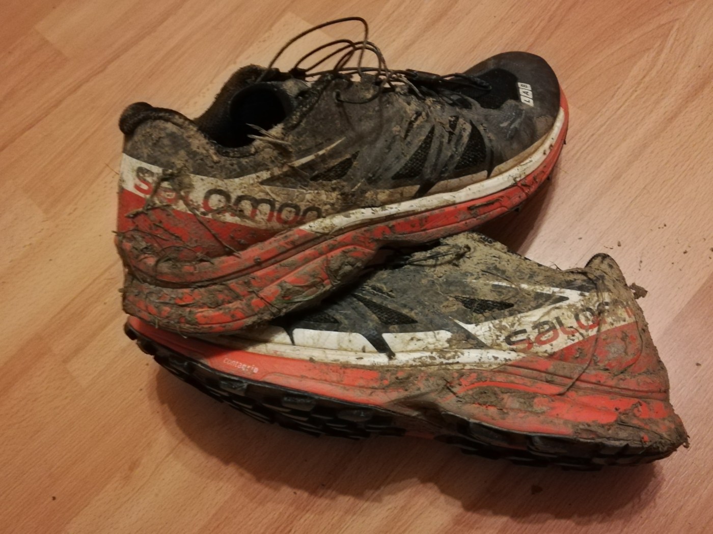 Cette fois, le terrain était bien différent, avec de la boue dès les premiers mètres du camp militaire jusque sa sortie. Quinze kilomètres (ou presque) de boue à n’en plus finir. Et tous les types de boue ! La gluante dans laquelle on s’enfonce sans savoir si on va y laisser la chaussure. La glissante à chaque pas qui rend la progression plus que périlleuse sur un sol très irrégulier. La lourde qui colle aux chaussures. La bruyante lorsque les crampons s’en arrachent avec le bruit caractéristique de la ventouse. L’eau stagnante qui remplit les chaussures. Mais ce festival d’ornières et de marécages ne m’a absolument pas déplu. Quitte à se salir, autant s’en régaler. Age mental: 3 ans !