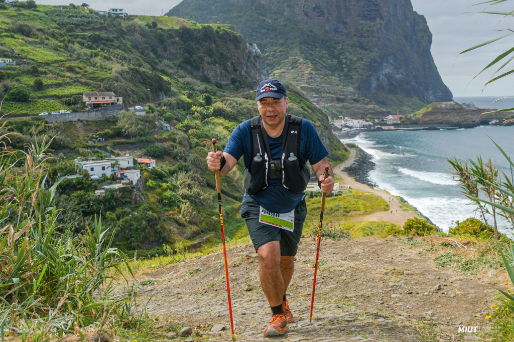 Machico – Le podium d’arrivée se dresse dans la baie de Machico, au bord de l’océan Atlantique. Madeira Island Ultra Trail. Le MIUT, dans sa version de 42 kilomètres, est une épreuve particulièrement difficile par la technicité de son tracé et ses innombrables marches d’escaliers. Mais quelle émotion de pouvoir franchir l’arrivée d’une épreuve qui marque par le côté professionnel de son organisation.